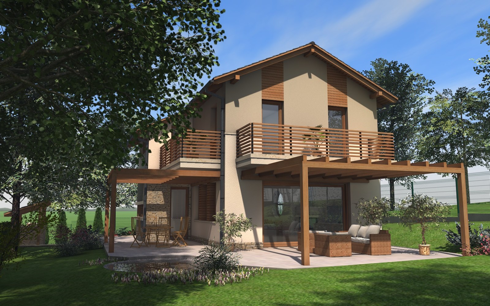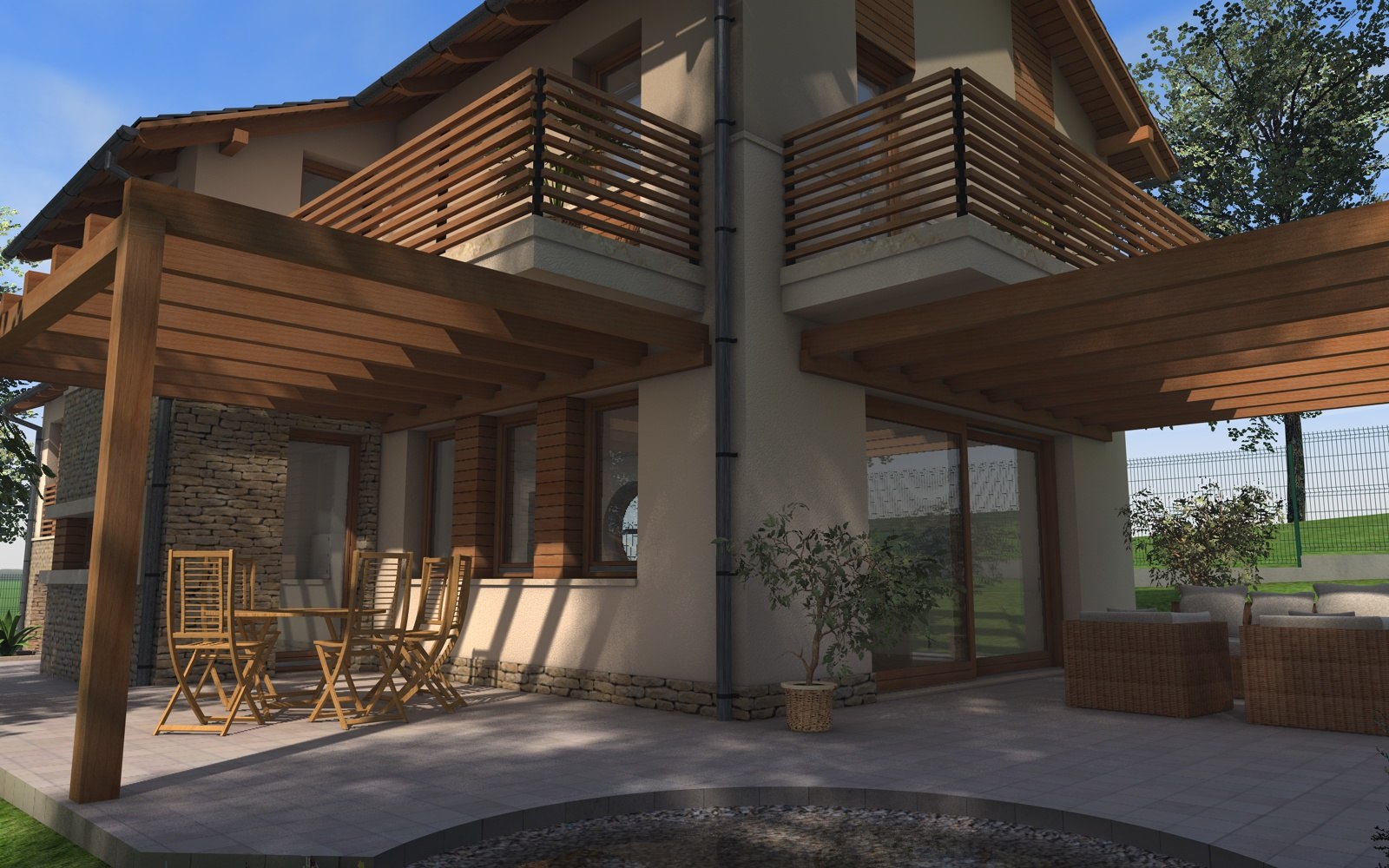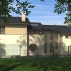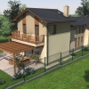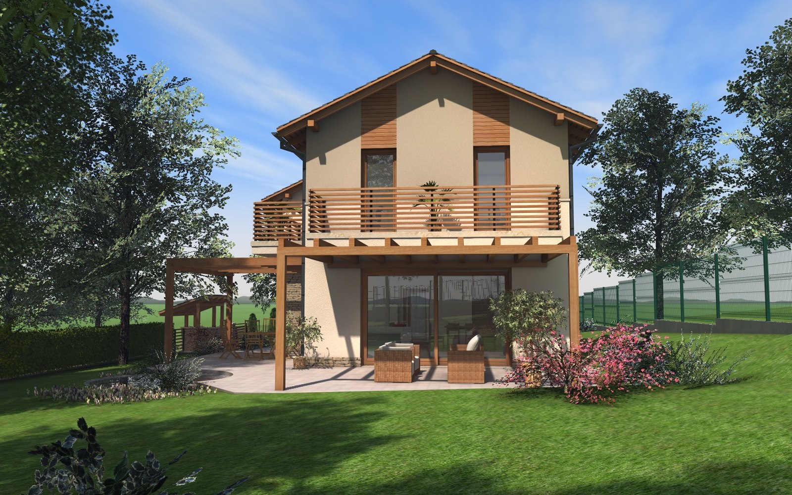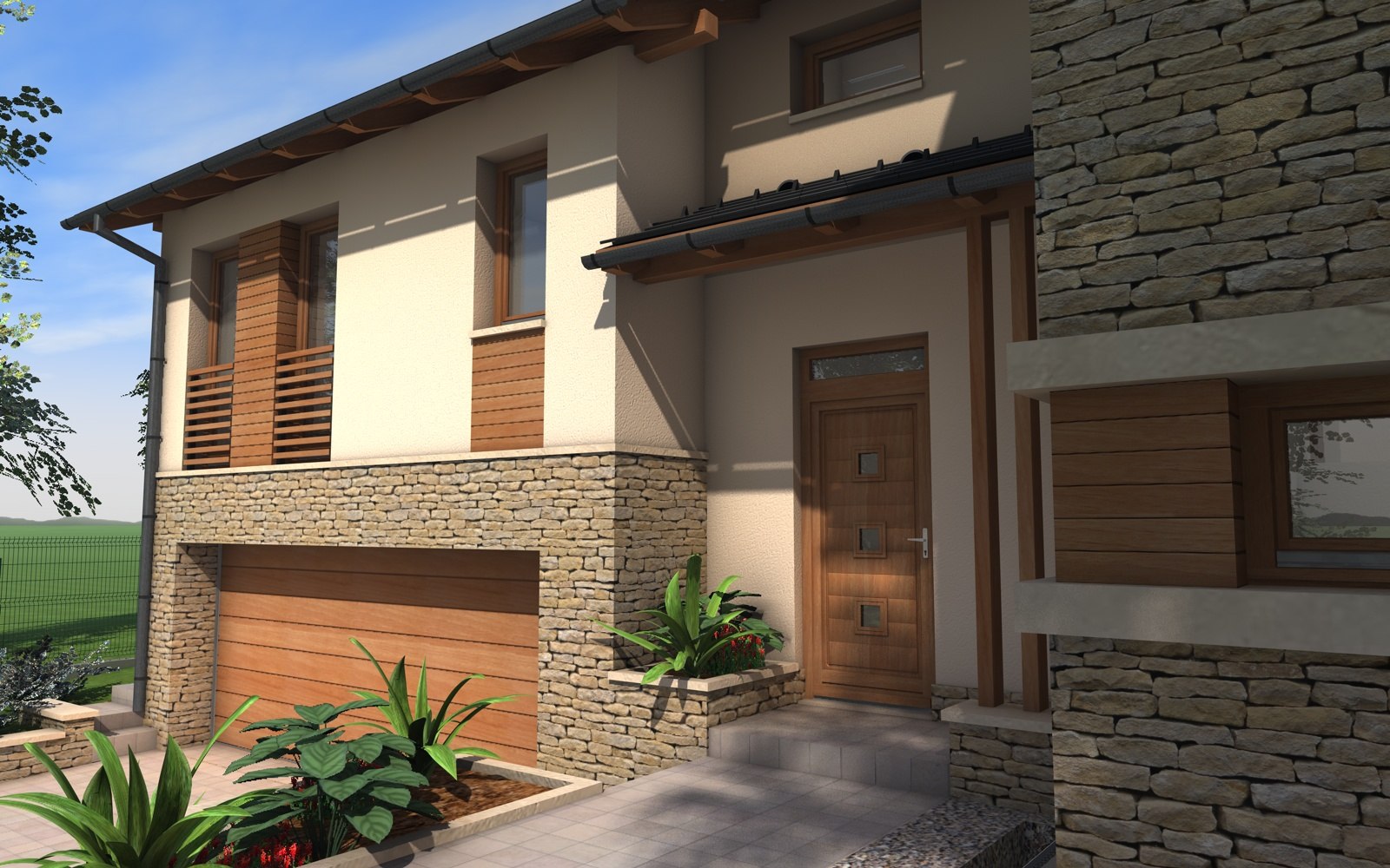 A tervezett épület egyszerű tömegű, nyeregtetővel fedett ház, részben alápincézve. A telek lejtését kihasználva az épületet szinteltolással alakítottuk ki. A garázst az utca szintjén, a földszinti lakóteret fél szinttel feljebb, az udvar szintjén helyeztük el.