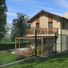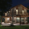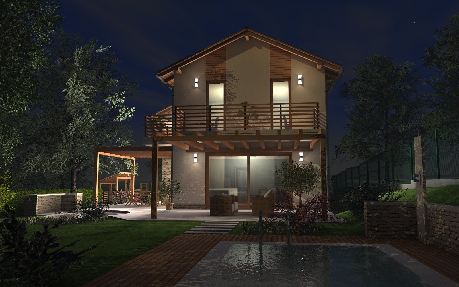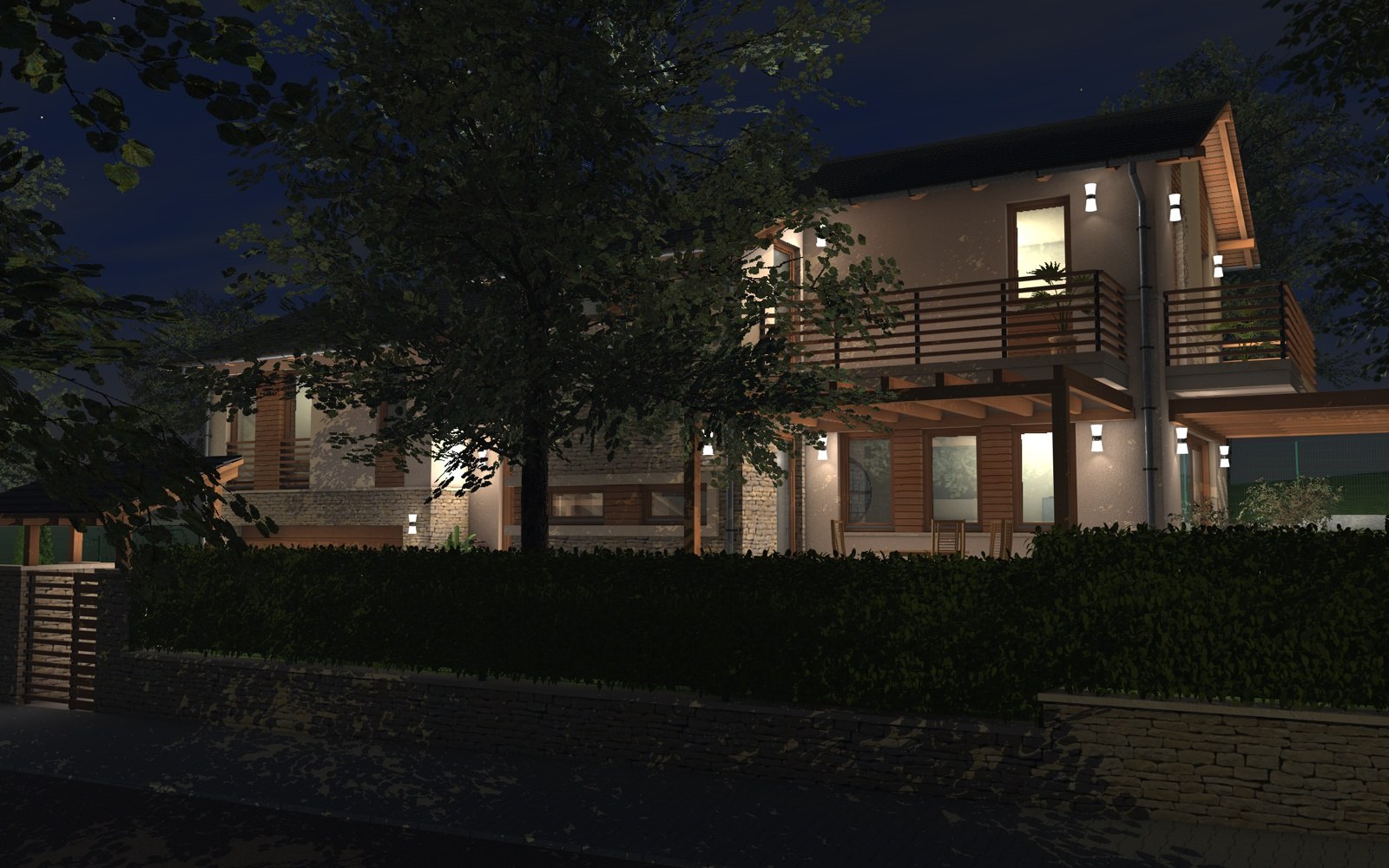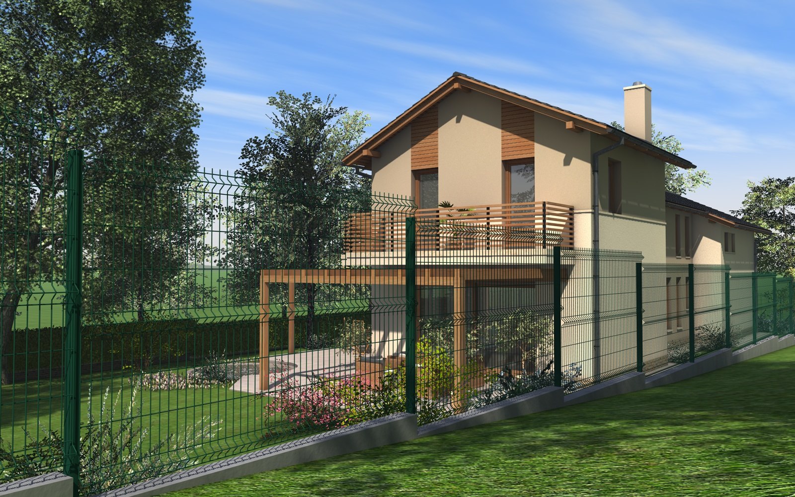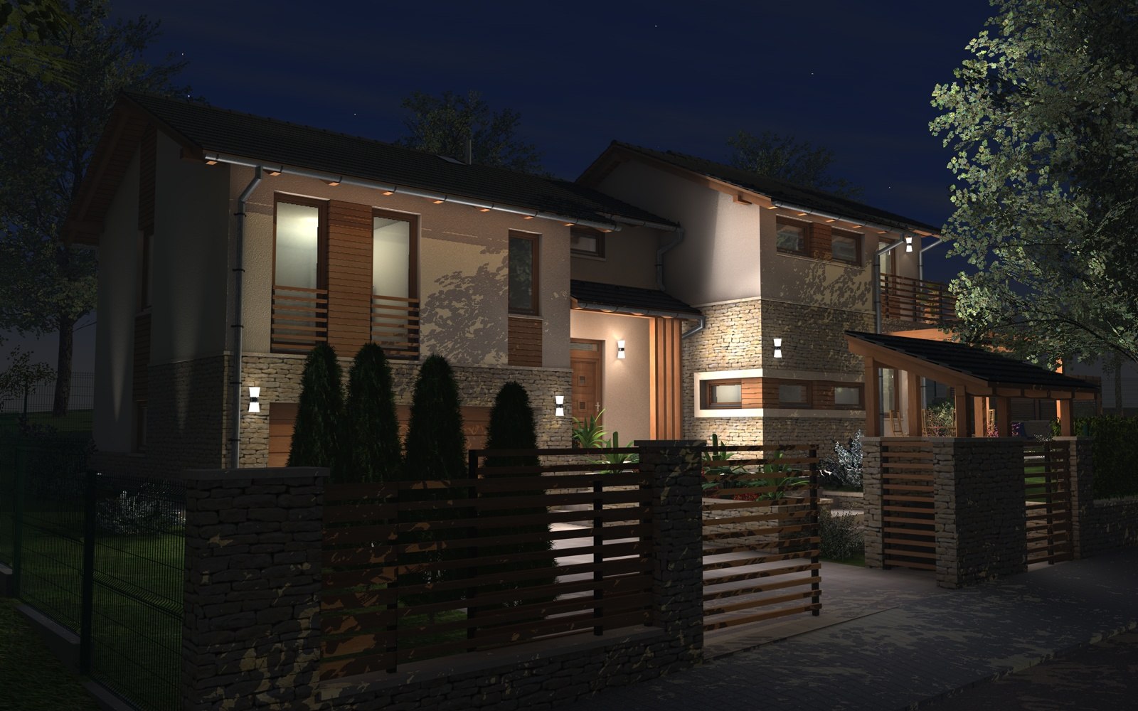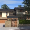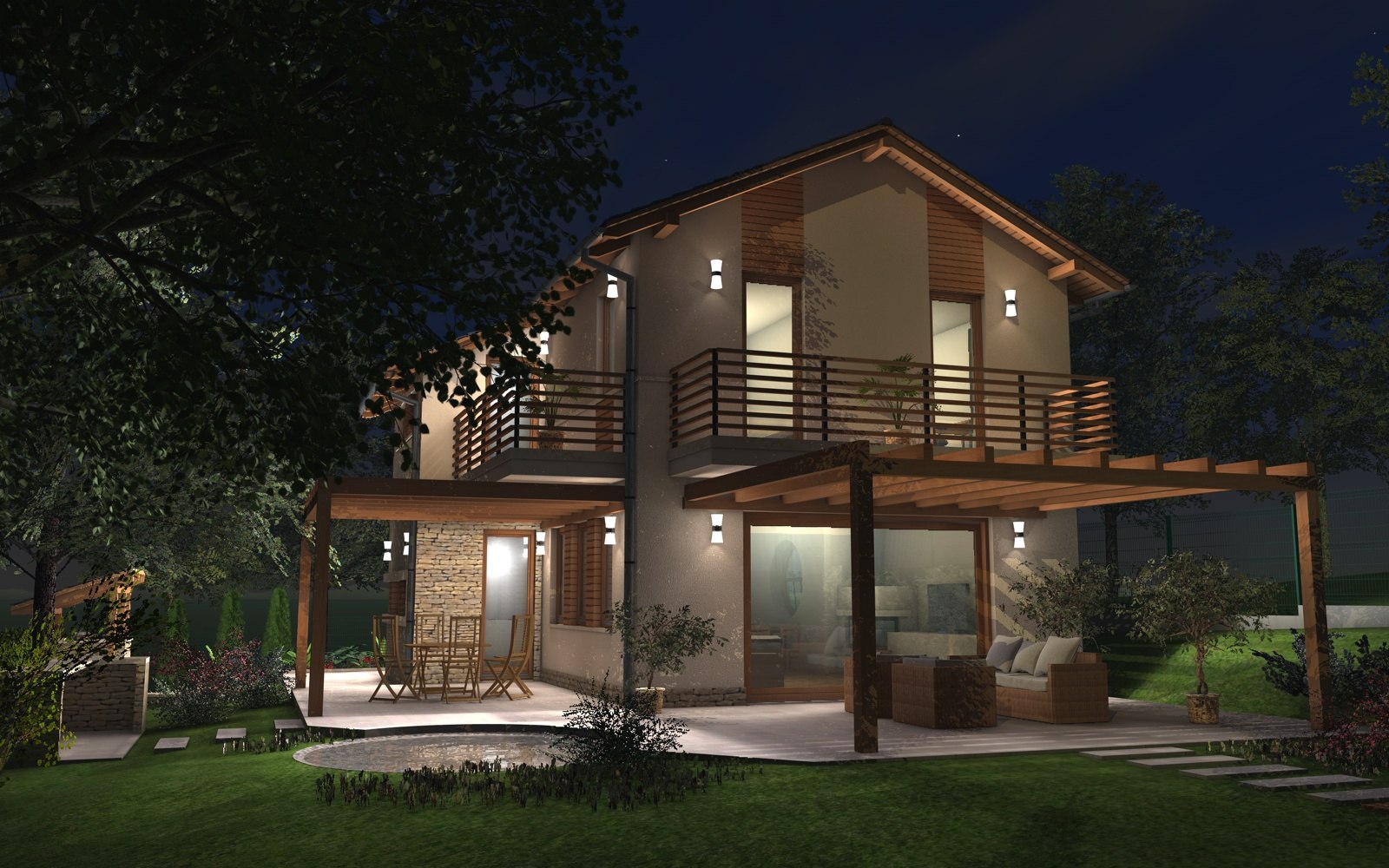A tervezett épület egyszerű tömegű, nyeregtetővel fedett ház, részben alápincézve. A telek lejtését kihasználva az épületet szinteltolással alakítottuk ki. A garázst az utca szintjén, a földszinti lakóteret fél szinttel feljebb, az udvar szintjén helyeztük el.