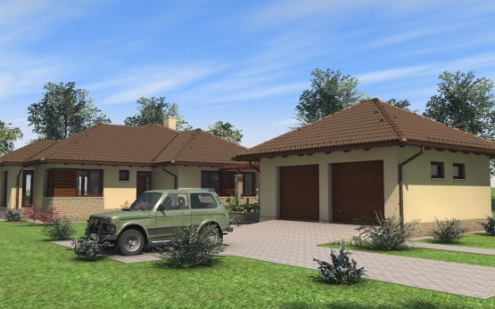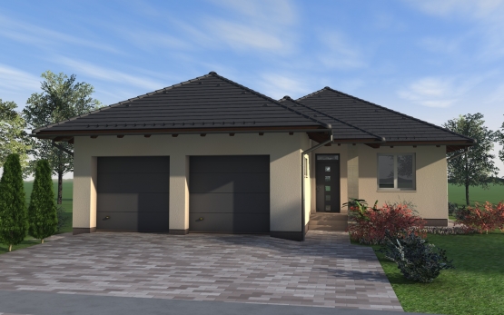 Földszintes családi ház, kertvárosias lakóövezetben.