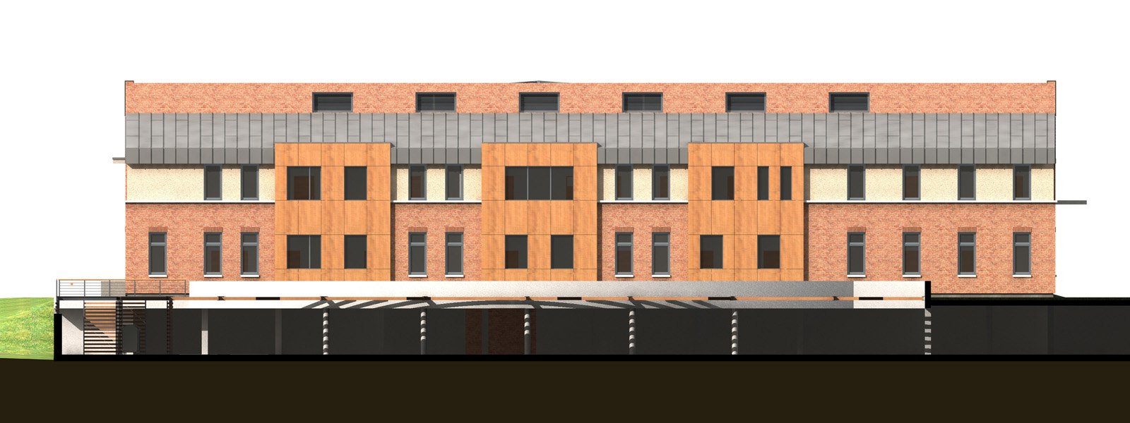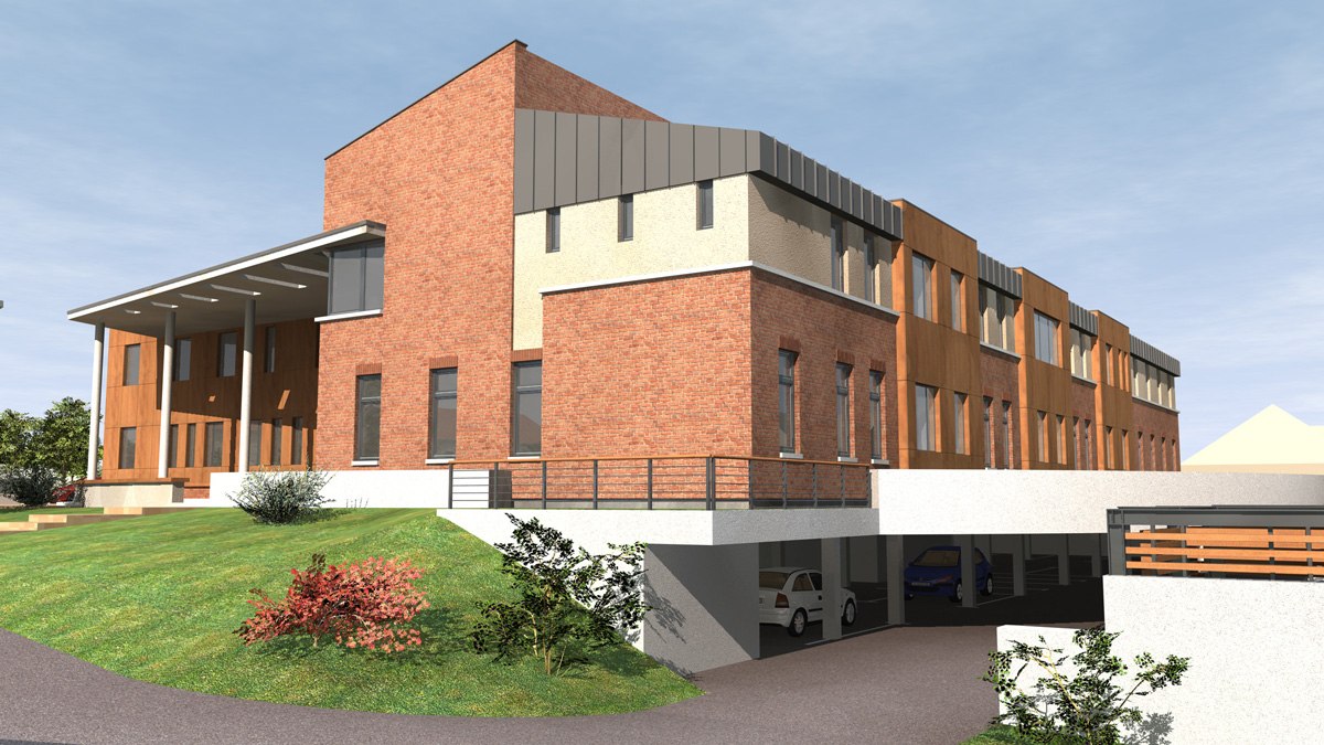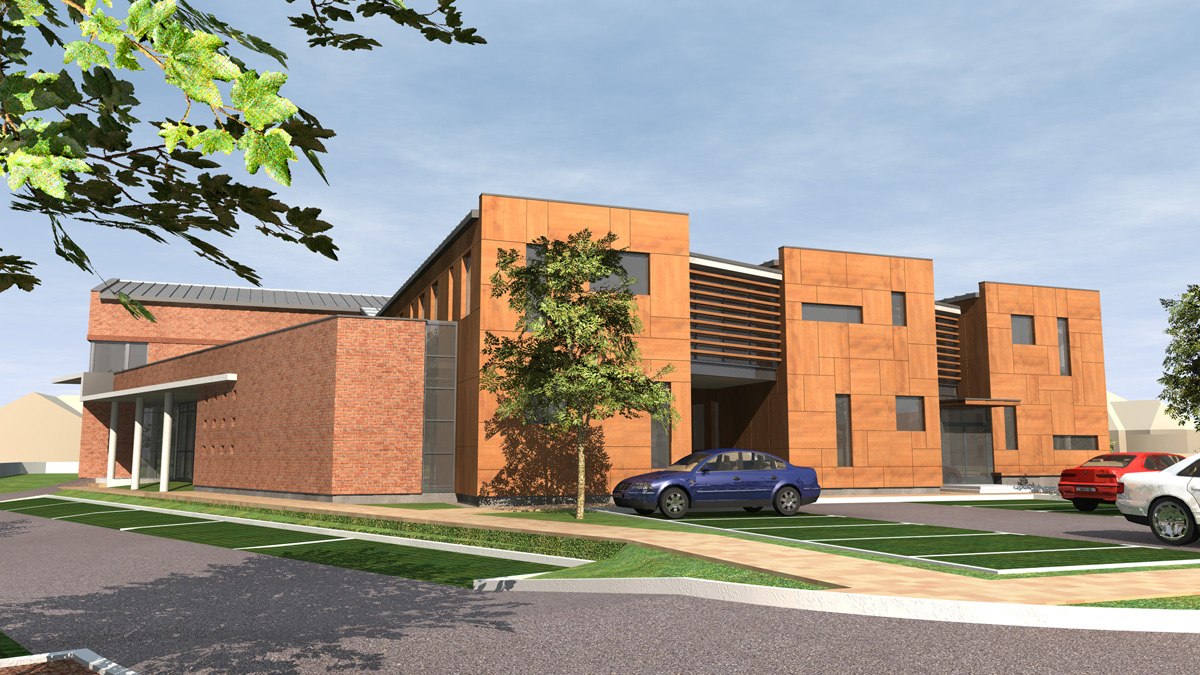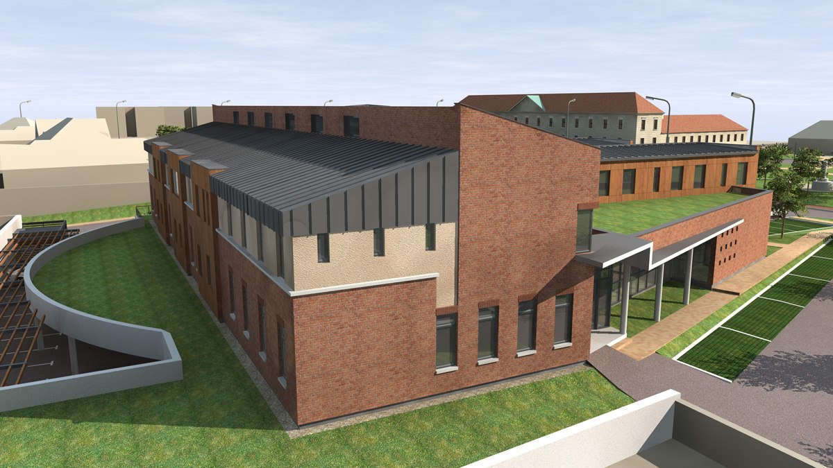 „Enying, Batthyány-kastély és műemléki környezete rehabilitációja" című program keretében új Rendelőintézet pályaművön alapuló építési engedélyezési eljárást megelőző építészeti tervpályázata. Építészek: Riedl Tamás, Ser Róbert, Tóth Árpád